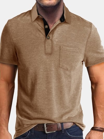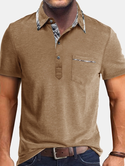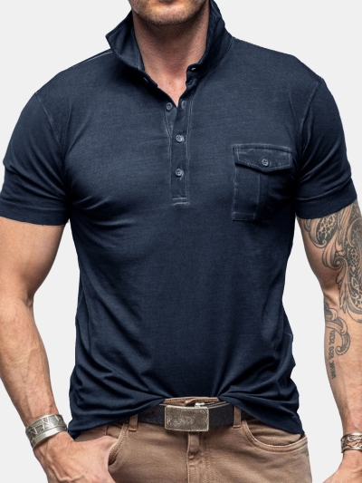 Men's Tropical Leaf Print Pocket Short Sleeve Shirt