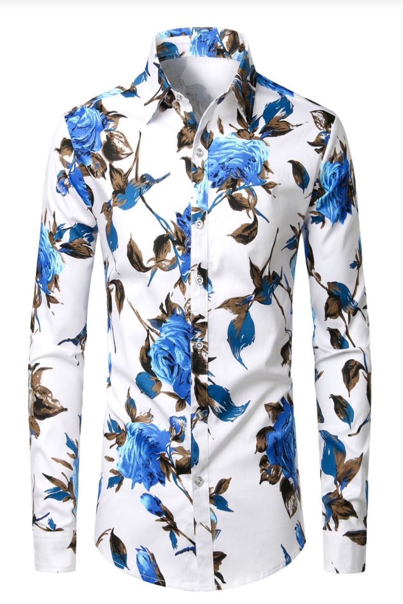 Men's Floral Long Sleeve Animal Print Cotton Casual Button Up Shirt