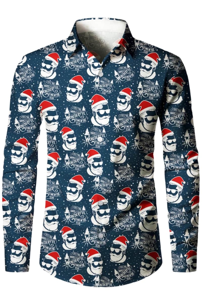 Men's Christmas Santa Claus Blue Festival Long Sleeve Shirt