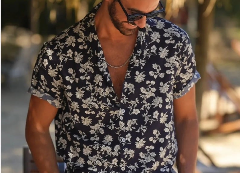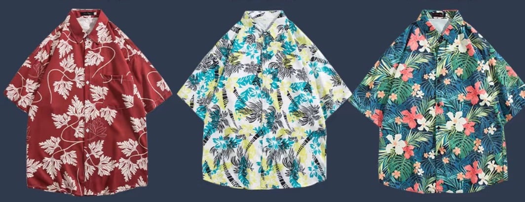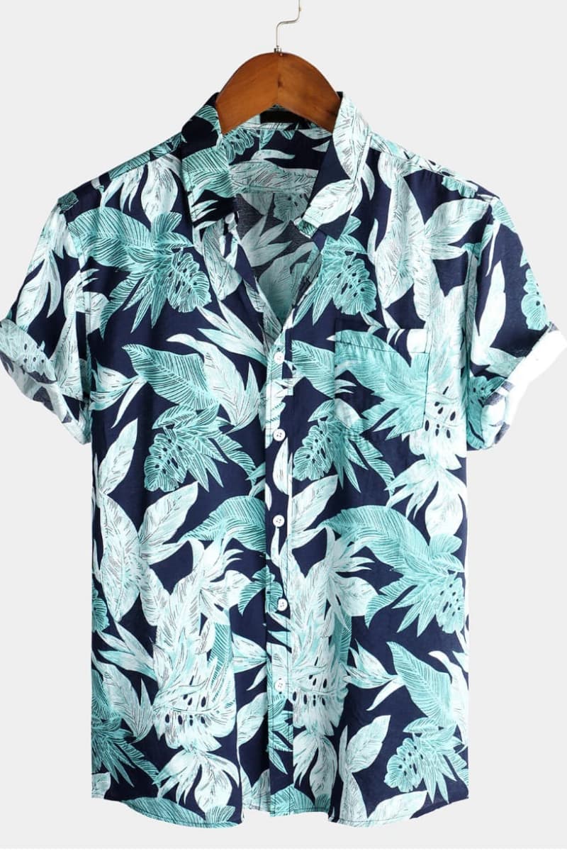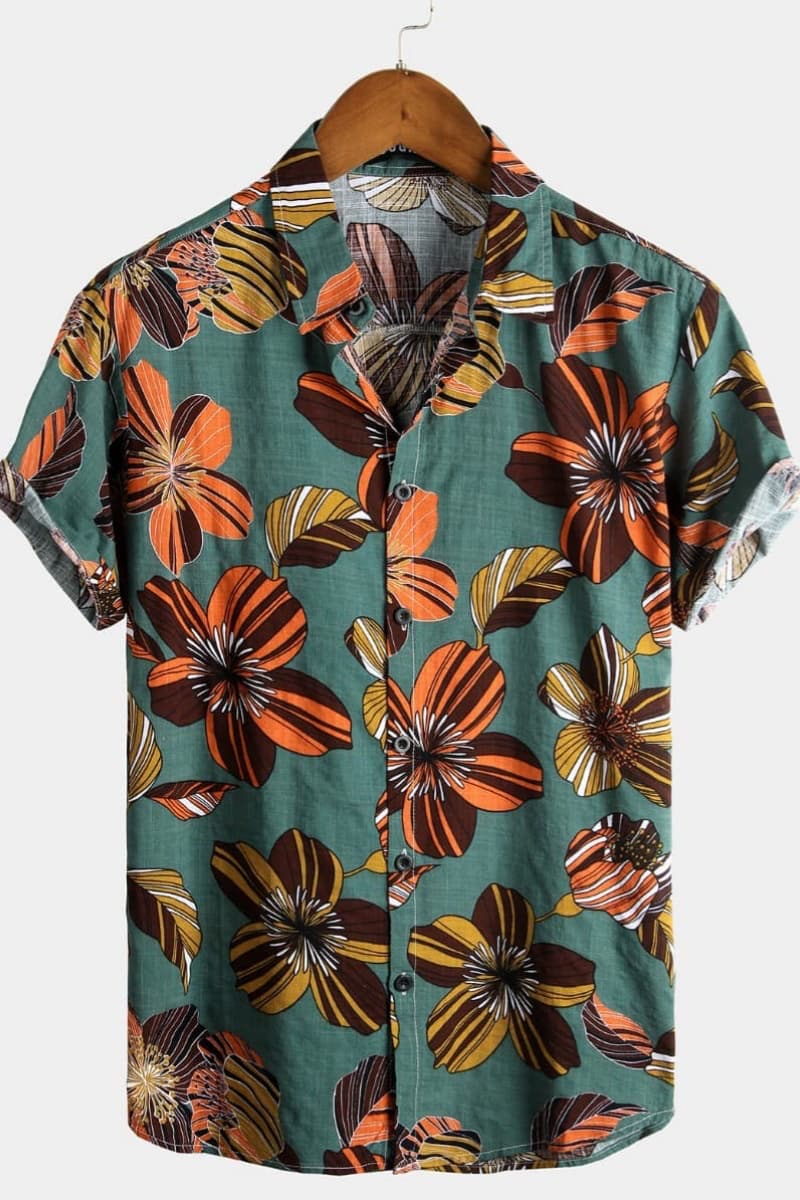 Men's Flower Tropical Hawaii Cotton Short Sleeve Shirt
