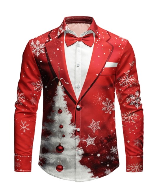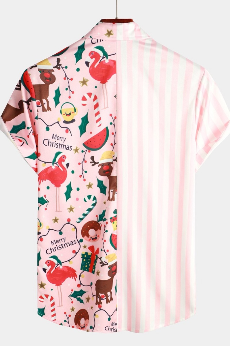 Men's Christmas Print Holiday Regular Fit Short Sleeve Shirt